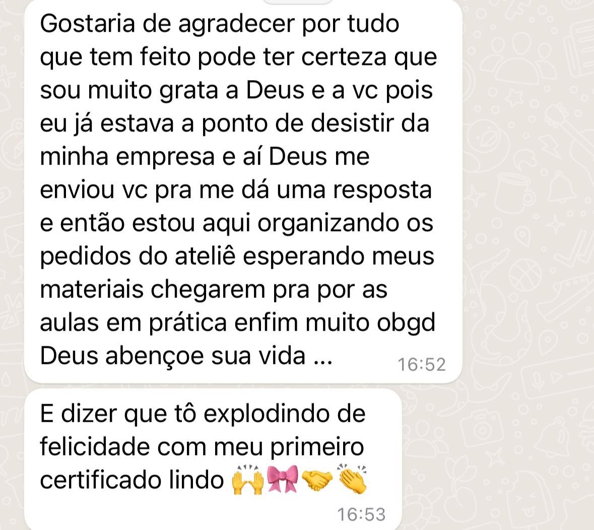 Acredite, eu e a minha família vivemos há 12 anos do trabalho de nossas mãos e decidi compartilhar com você todos os segredos, passo a passo, um verdadeiro manual em detalhes para você replicar.